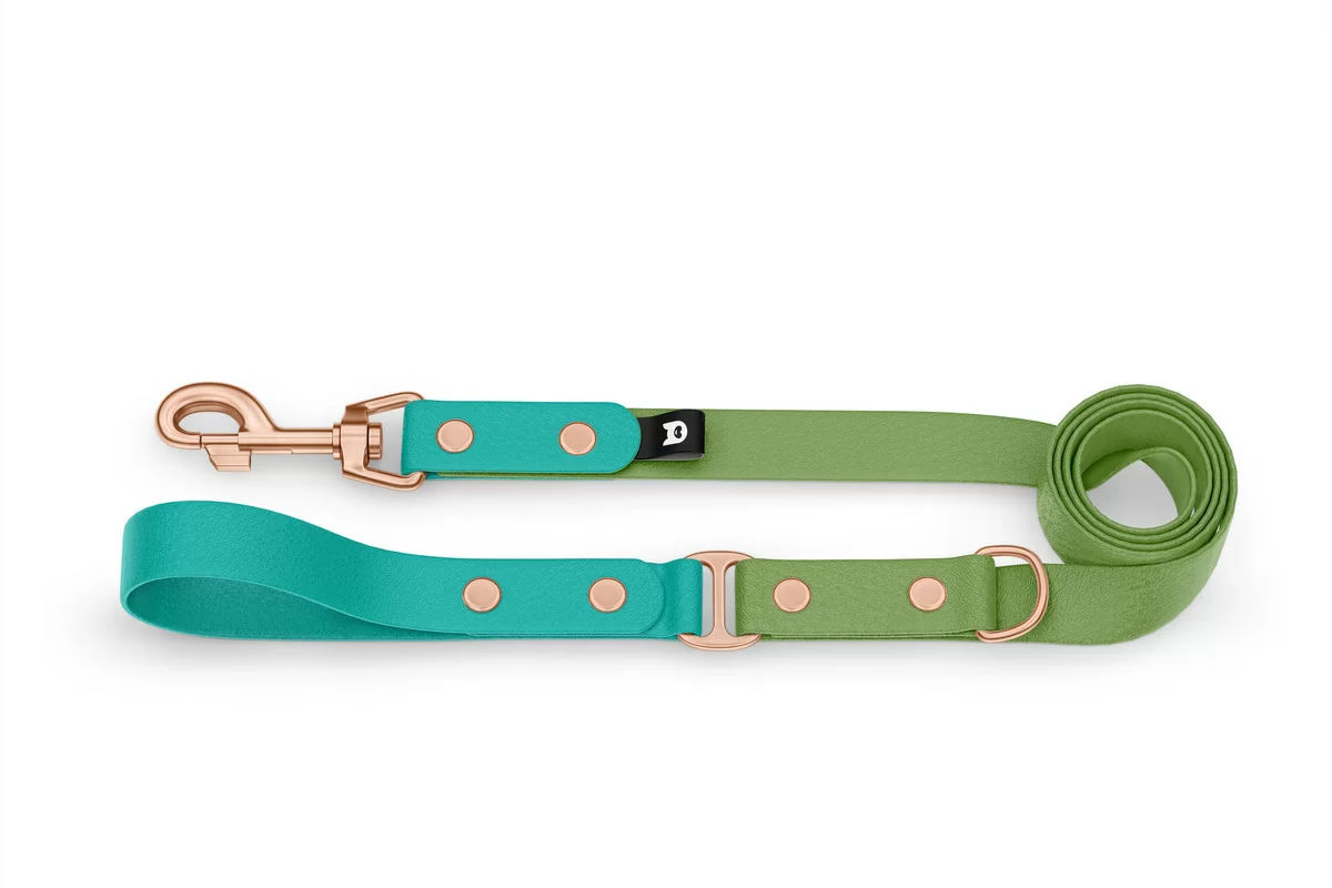Guinzaglio Duo per Cani: Verde pastello & Oliva con componenti in Oro rosa